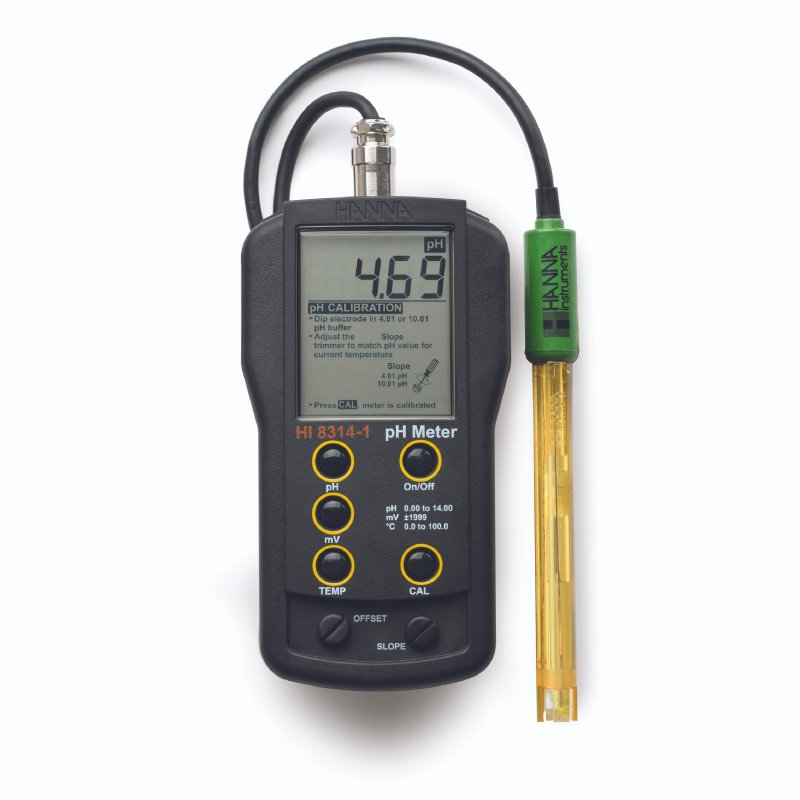 El HI 83141-1 y HI 8314-1 son medidores portátiles de pH/ Medidores de mV diseñados para ser precisos y confiables y fácil de usar. El HI8314-1 usa el preamplificador HI1217-1 Electrodo de pH !ed con sensor interno incorporado sensor de temperatura. El HI83141-1 usa el electrodo de pH HI 1230B y sonda de temperatura HI 7669-1 usando conexiones separadas. La calibración manual se realiza en uno o dos puntos ajustando los trimmers en el panel frontal. Capaz de medir pH/mV y temperatura, estos medidores son excelentes para el campo trabajo, proporcionando un metro para múltiples usos.
