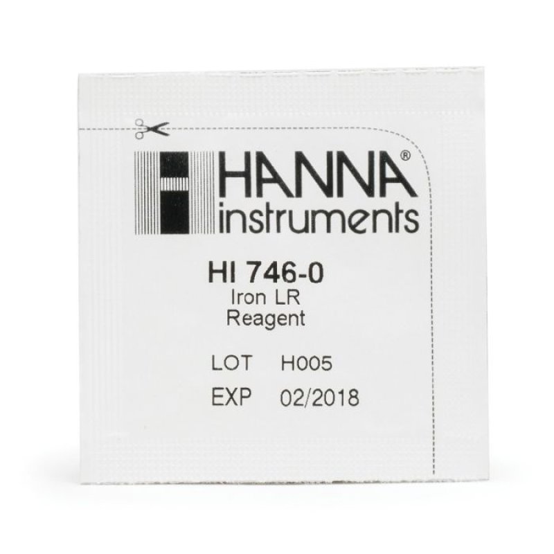 Los HI746-25 son reactivos de alta calidad preparados previamente lo que permite a los usuarios obtener mediciones rápidas y precisas con el Checker® HC para hierro de rango bajo, HI746. Estos reactivos siguen el Método TPTZ en el que la reacción entre el hierro y los reactivos provoca un color violeta en la muestra. Al agregar los sobres de reactivos HI746-25 a la muestra la reacción tendrá lugar y el HI746 determinará la concentración del color que se produce. Los resultados se mostrarán en ppb de hierro. Estos reactivos están diseñados para ser utilizados con muestras que tienen un rango esperado de 0 a 999 ppb de hierro.