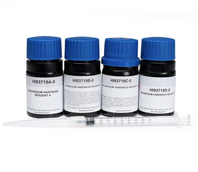 Los HI93719-01 son reactivos para la determinación colorimétrica de magnesio y dureza total. Hay suficientes reactivos para 100 pruebas para ser utilizados con un fotómetro portátil o de sobremesa compatible. Estos reactivos de alta calidad se fabrican en nuestras instalaciones de última tecnología y están claramente marcados con el número de lote y la fecha de vencimiento en cada botella para la trazabilidad.